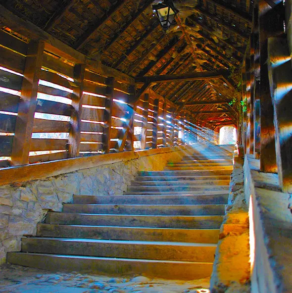 • Escalera Cubierta: Con 176 peldaños, esta estructura cubierta es ideal para una experiencia inolvidable al subir hacia la colina.